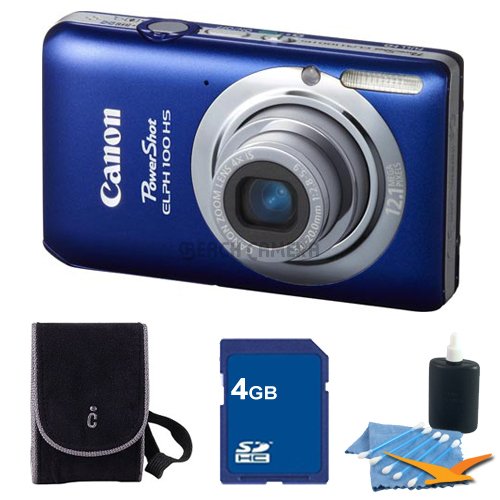 Canon PowerShot ELPH 100 HS Blue Digital Camera 4GB Bundle - Includes PowerShot ELPH 100 HS Blue Digital Camera, 4 GB Memory Card, Camera Carrying Case and Cleaning Kit. Overview