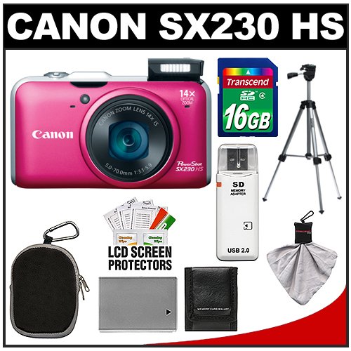 Canon PowerShot SX230 HS Digital Camera (Red) with 16GB Card + Battery + Case + Tripod + Accessory Kit Overview