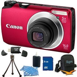 Canon Powershot A3300 16 MP Digital Camera with 5x Optical Zoom (Red) Camera Kit includes 8 GB Memory Card, Card Reader, Deluxe Carrying Case, Mini Tripod, & 3pc. Lens Cleaning Kit. Review