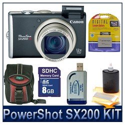 Canon PowerShot SX200 IS Digital Camera (Black),12.1 MP, 12x Optical Zoom, 3" LCD, Deluxe Carrying Case, 8 GB SD Card, BP-5LCL 1150mah Battery Pack, 3pc. Lens Cleaning Kit, SD USB 2.0 Card Reader Review