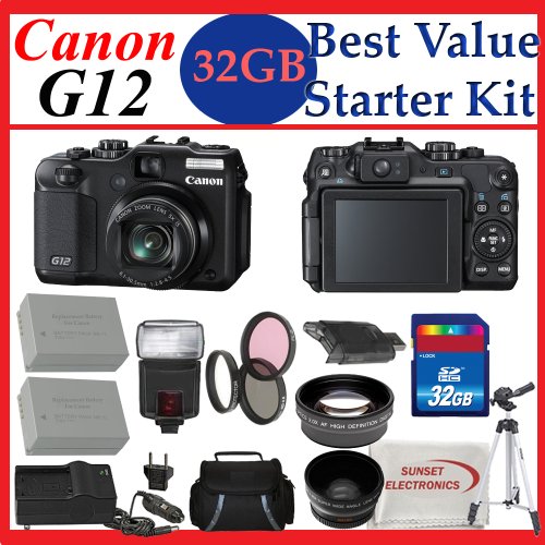 Canon PowerShot G12 Digital Camera + SSE Best Value 32GB, Deluxe Carrying Case, Batteries, Lens & Flash Complete Accessories Package Review